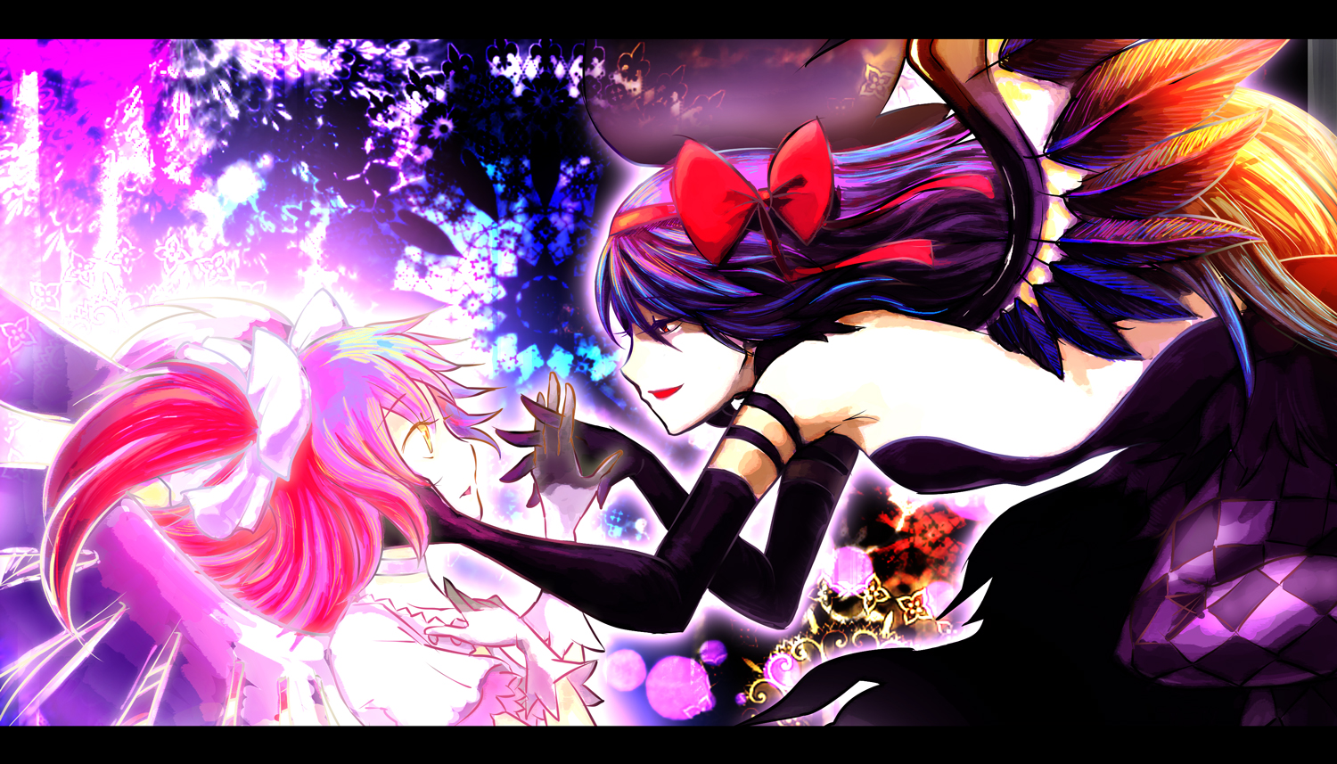 AまどさんとDほむさん。Dほむのデザインがイマイチ分からなかった(爆)ので、時間はかけないで勢いだけで描いてます^q^